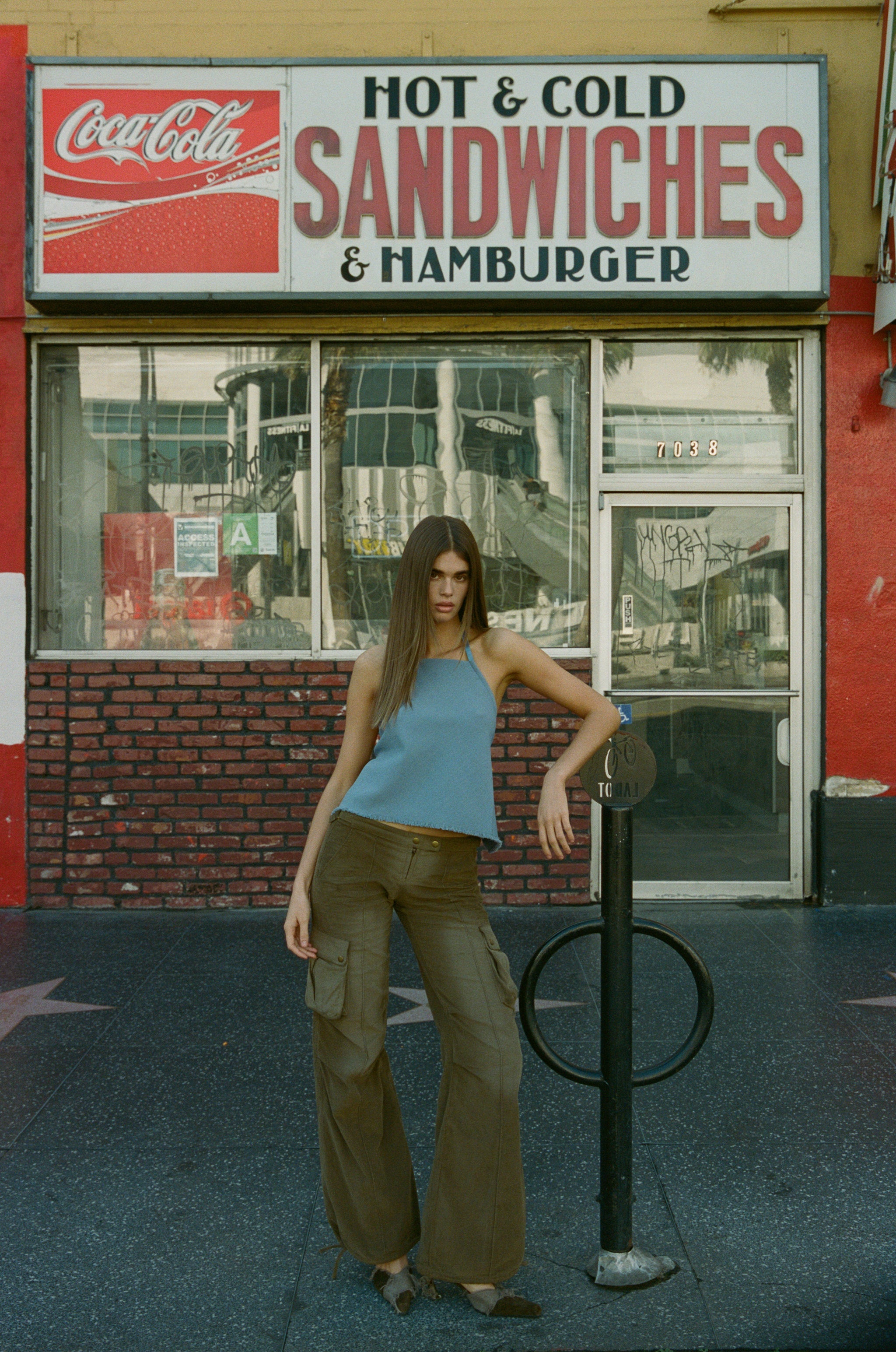 The Bridgette Pants are a low rise pant. featuring side pockets. and adjustable side buckles.