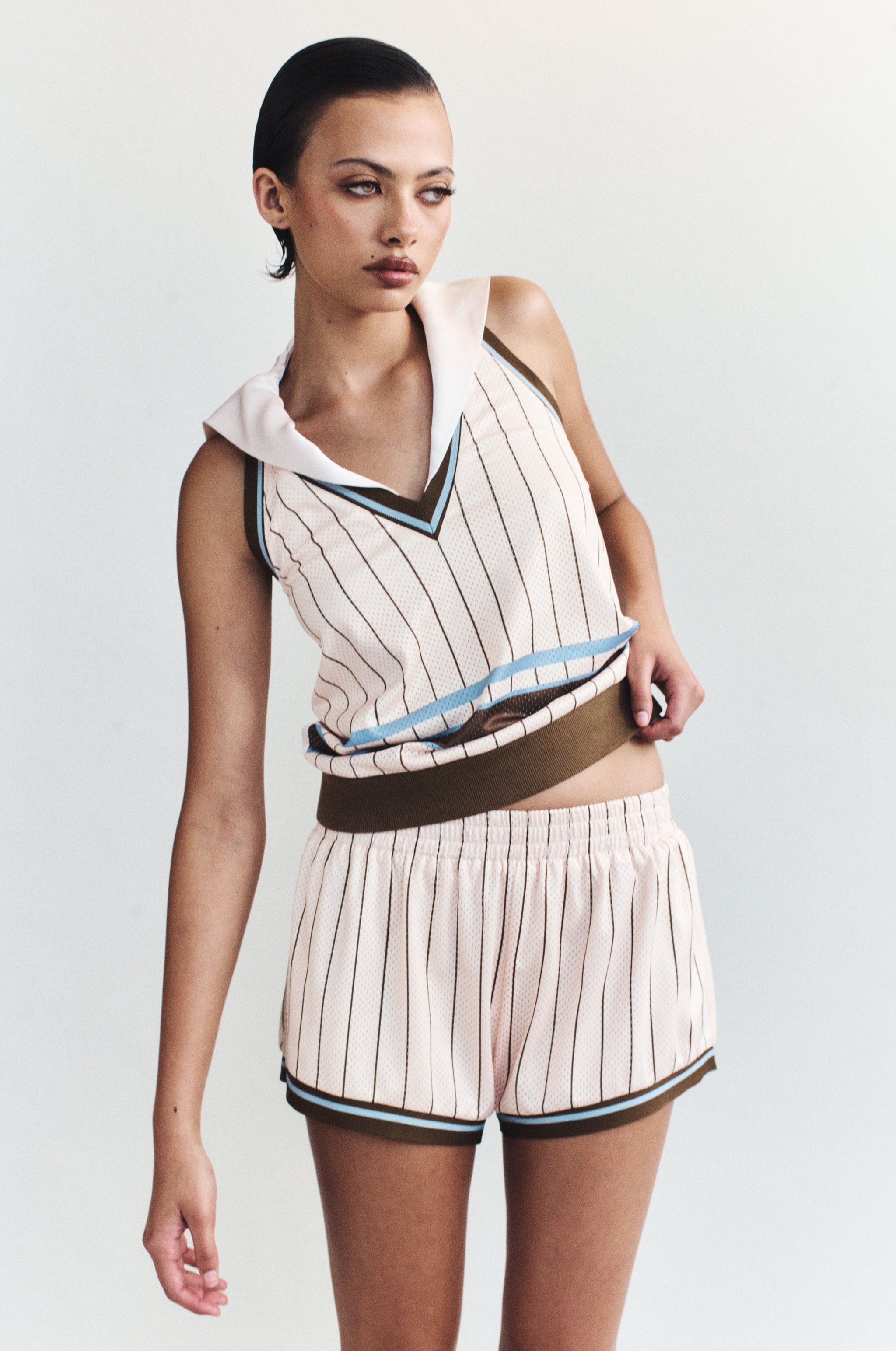The Mickey Shorts are a low rise short featuring a thick elasticated waistband and contrast taping at the leg.