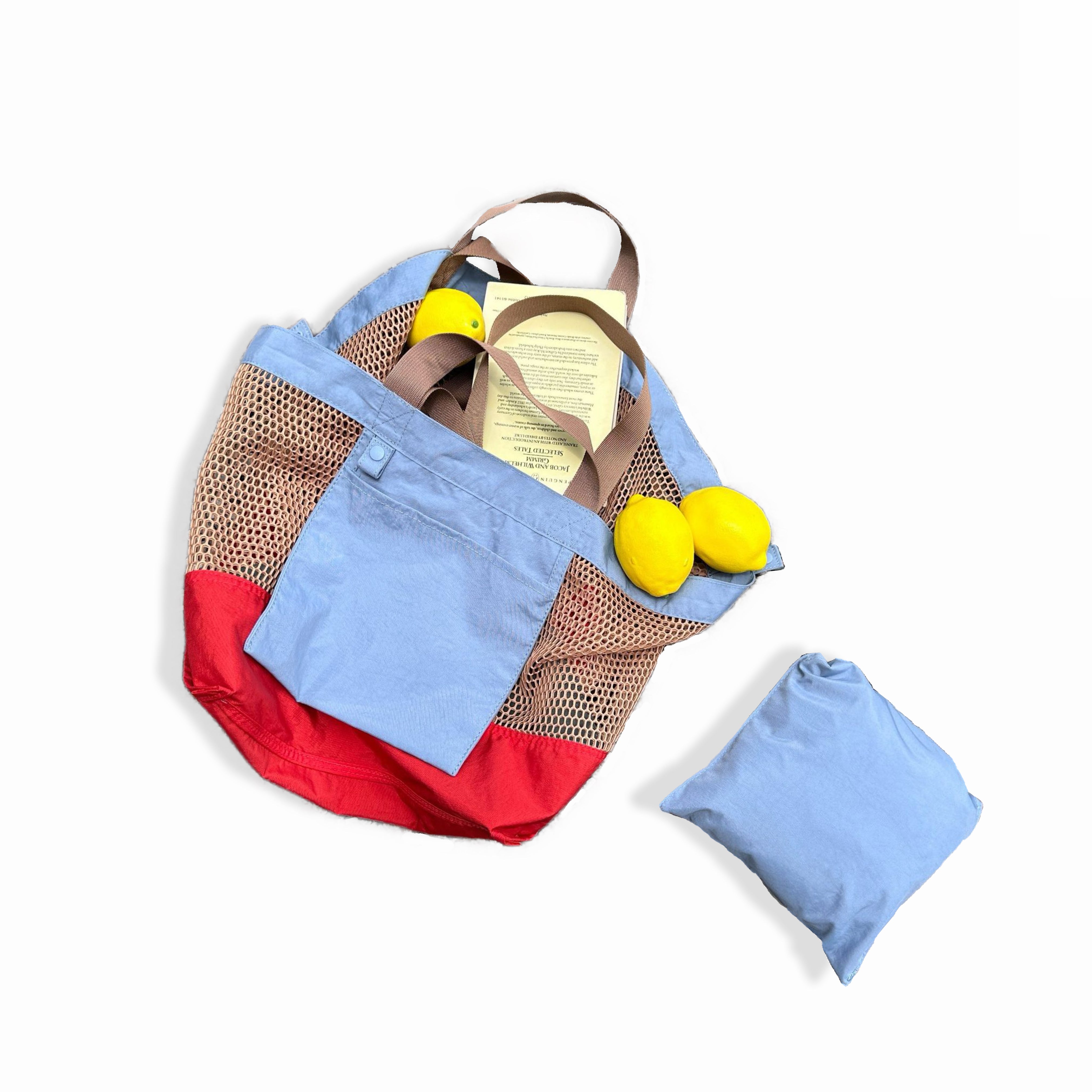 This tote bag features a dual-sided design with inner and outside different colors. Can be reversed as you like. Made from lightweight nylon, it offers a spacious interior for essentials. Foldable for easy storage, perfect for daily use or travel.