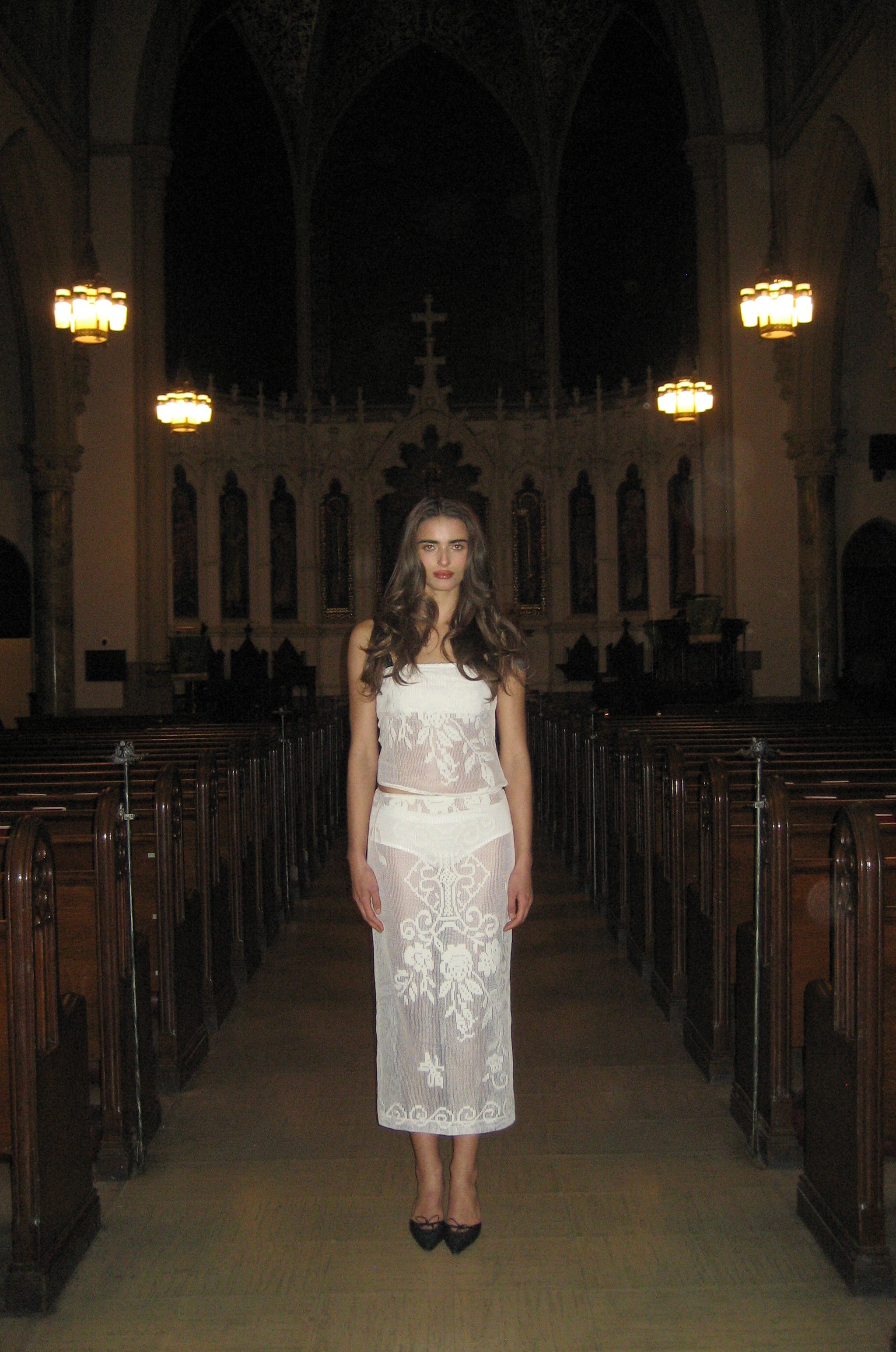 The Saint Midi Skirt is a low rise. midi length skirt designed to be worn low on the hips featuring an elasticated waistband and leg split at the centre back.